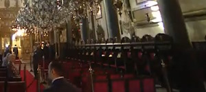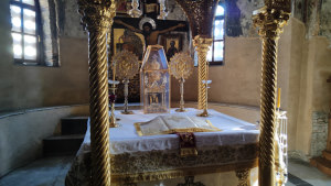 Το αθέατον της Αγίας Τράπεζας, στην Κωνσταντινούπολη, στην Ελλάδα, και από Ανατολή σε Δύση, την ώρα της Αναφοράς — Τας θύρας, τας θύρας· Ποιες θύρες; Τό Ιερόν Κιβώριον, τα Καταπετάσματα-Παραπετάσματα-Βήλα, το Φράγμα του Ιερού Βήματος, ....