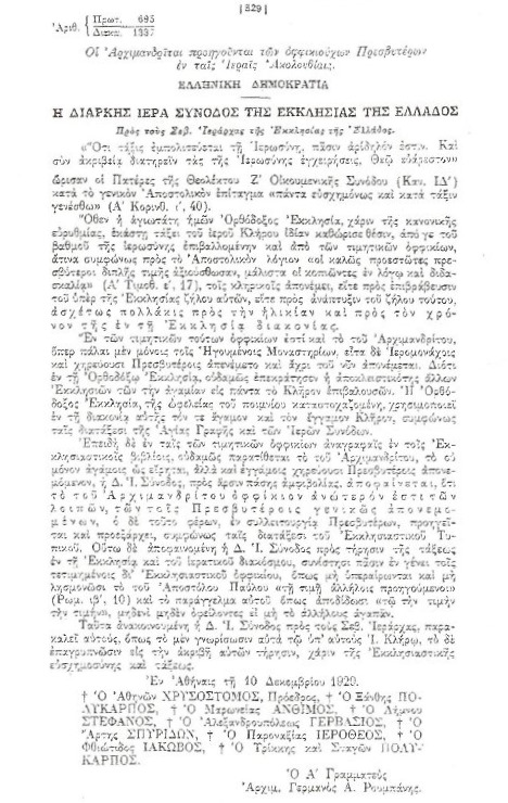 Η εγκύκλιος της Δ.Ι.Σ του 1929 "Οι Αρχιμανδρίται προηγούνται των οφφικιούχων Πρεσβυτέρων εν ταις Ιεραίς Ακολουθίαις":