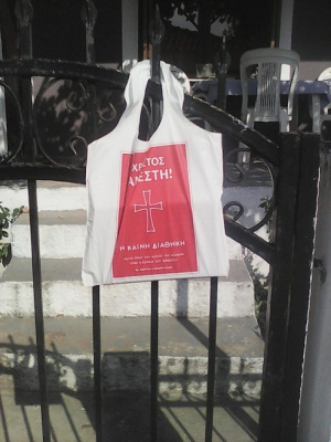 Τις τελευταίες τρείς ημέρες, ο Μητροπολίτης μας και οι Ιερείς έγιναν δέκτες διαμαρτυριών και καταγγελιών από πιστούς, για την ενόχληση που ένιωσαν από την ‘‘πιεστική επικοινωνία’’ που είχαν από μέλη της Ελληνικής Ιεραποστολικής Ένωσης (Ε.Ι.Ε). Σύμφωνα με τις καταγγελίες, ομάδες που αποτελούνταν από 20 ως 40 μέλη στην πλειοψηφία τους αλλοδαποί με αυτοκίνητα με ξένες πινακίδες, σάρωσαν τα χωριά της Μητροπόλεως με σκοπό να διανείμουν στους κατοίκους τους μια σακούλα που από την μια πλευρά είχε την επιγραφή Χριστός Ανέστη και την φράση του Αγίου Ιωάννου του Χρυσοστόμου‘‘ αιτία όλων των κακών του κόσμου είναι η άγνοια των γραφών’’, ενώ από την άλλη πλευρά απεικονίζεται η Ελληνική σημαία με ανακοίνωση ’‘ΑΥΤΟ ΤΟ ΠΑΚΕΤΟ ΔΕΝ ΕΧΕΙ ΚΑΜΙΑ ΣΧΕΣΗ ΜΕ ΑΙΡΕΣΕΙΣ ΜΑΡΤΥΡΕΣ ΤΟΥ ΙΕΧΩΒΑ, ΜΟΡΜΟΝΟΥΣ ΚΤΛ’’. Στο εσωτερικό της η σακούλα είχε ένα βιβλίο με τον τίτλο Η ΚΑΙΝΗ ΔΙΑΘΗΚΗ εκδόσεων Ελληνικής Βιβλικής Εταιρείας χωρίς αρχαίο κείμενο, αλλά με μετάφραση και με διαπιστευτήρια προς τους καθηγητές που έκαναν την μετάφραση από την Ιερά Σύνοδο. Επίσης υπήρχαν 3 έντυπα, ένα για την μεταστροφή στο Χριστό ενός πρώην αμαρτωλού, ένα έντυπο με την ιδεολογία- πίστη της Ε.Ι.Ε. και μια απαντητική επιστολή, ώστε να αποσταλούν δωρεάν βιβλία, cd και DVD σε όποιον απαντήσει.. Και ενώ σε όλα τα έντυπα υπάρχει διεύθυνση για επικοινωνία μέσου διαδικτύου γίνεται και η εξής προτροπή "Σε ενθαρρύνουμε να πηγαίνεις στην Εκκλησία της ενορίας σου. Αν δεν σχετίζεσαι με την τοπική ενορία σου μπορείς να πάς και σε μια Ευαγγελική Εκκλησία της περιοχής σου".