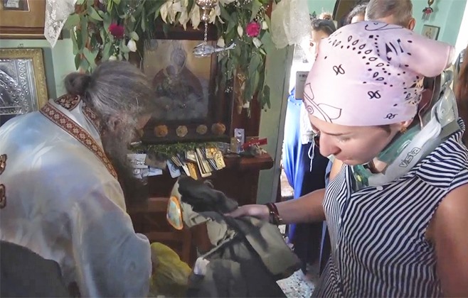 Η Αρχιλοχίας Βασιλική Πλεξίδα, που σώθηκε από την Παναγία που επικαλέστηκε, από την συντριβή του στατιωτικού ελικοπτέρου στο Σαραντάπορο, μίλησε δημόσια για το θαύμα Της, μετά την λειτουργία στην Παναγία Ακρωτηριανή στην Σέριφο (από τον antenna.gr):
