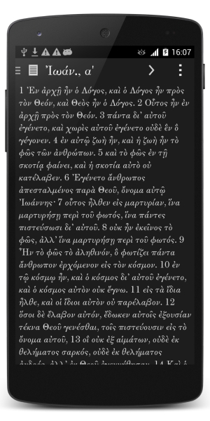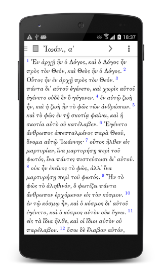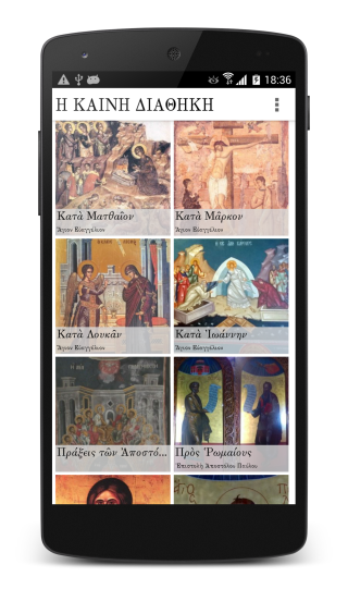 Ἡ ἐφαρμογή Η ΚΑΙΝΗ ΔΙΑΘΗΚΗ σύμφωνη μὲ τὴν ἔκδοση 1904 τοῦ Οἰκουμενικοῦ Πατριαρχείου, γιά Android, προγραμματίστηκε ἀπό τόν Παναγιώτη Δ. Παπαδημητρίου, καὶ εἶναι διαθέσιμη δωρεάν στό Play Store (# gr.psaltiki.nt) ἀπό τό 2014.