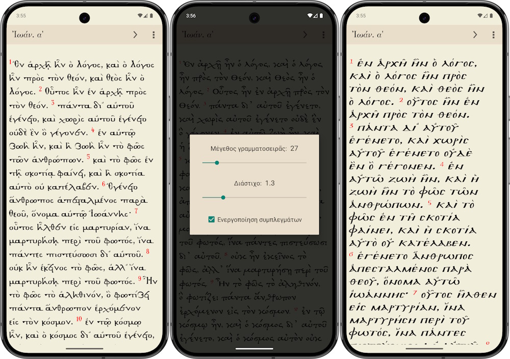 2. Στὴν ἐφαρμογὴ χρησιμοποιοῦνται οἱ γραμματοσειρές: