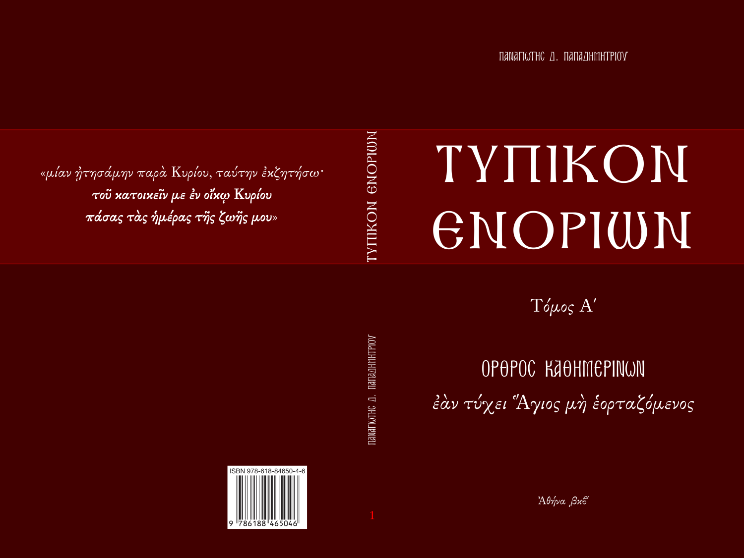 Κυκλοφόρησε (27 Ὀκτ. 2022) ἡ νέα ἔκδοση τοῦ Αʹ Τόμου τῆς σειρᾶς «ΤΥΠΙΚΟΝ ΕΝΟΡΙΩΝ», μὲ τὸν Ὄρθρο τῶν καθημερινῶν ὅταν τύχει Ἅγιος μὴ Ἑορταζόμενος.