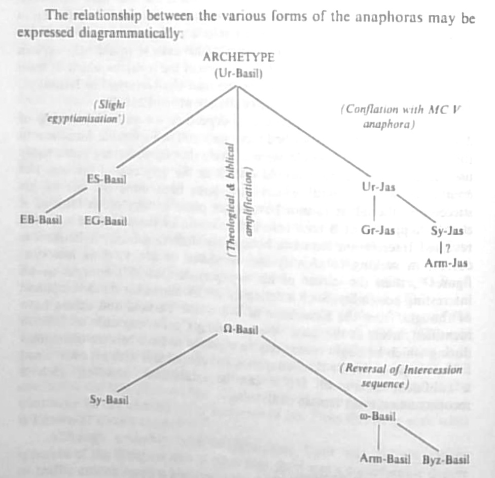 Το συμπέρασμα αυτής της μελέτης είναι ότι η διακριτή σχέση μεταξύ των αναφορών των Λειτουργιών του Αγίου Βασιλείου και του Αγίου Ιακώβου οφείλεται στο γεγονός ότι αποτελούν ανεξάρτητα παράγωγα μιας ενιαίας κοινής μορφής και ότι αυτές οι παράγωγες μορφές κατά πάσα πιθανότητα δημιουργήθηκαν μεταξύ των ετών 365 και 380, πιθανώς από τον Άγιο Μέγα Βασίλειο Καισαρείας και τον Άγιο Κύριλλο Ιεροσολύμων.